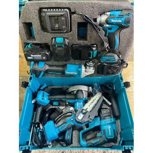 Набор 6 в1 (гайковерт,шуруповерт,ушм 125,перфоратор,пила диск. ручк.,пила цепная)